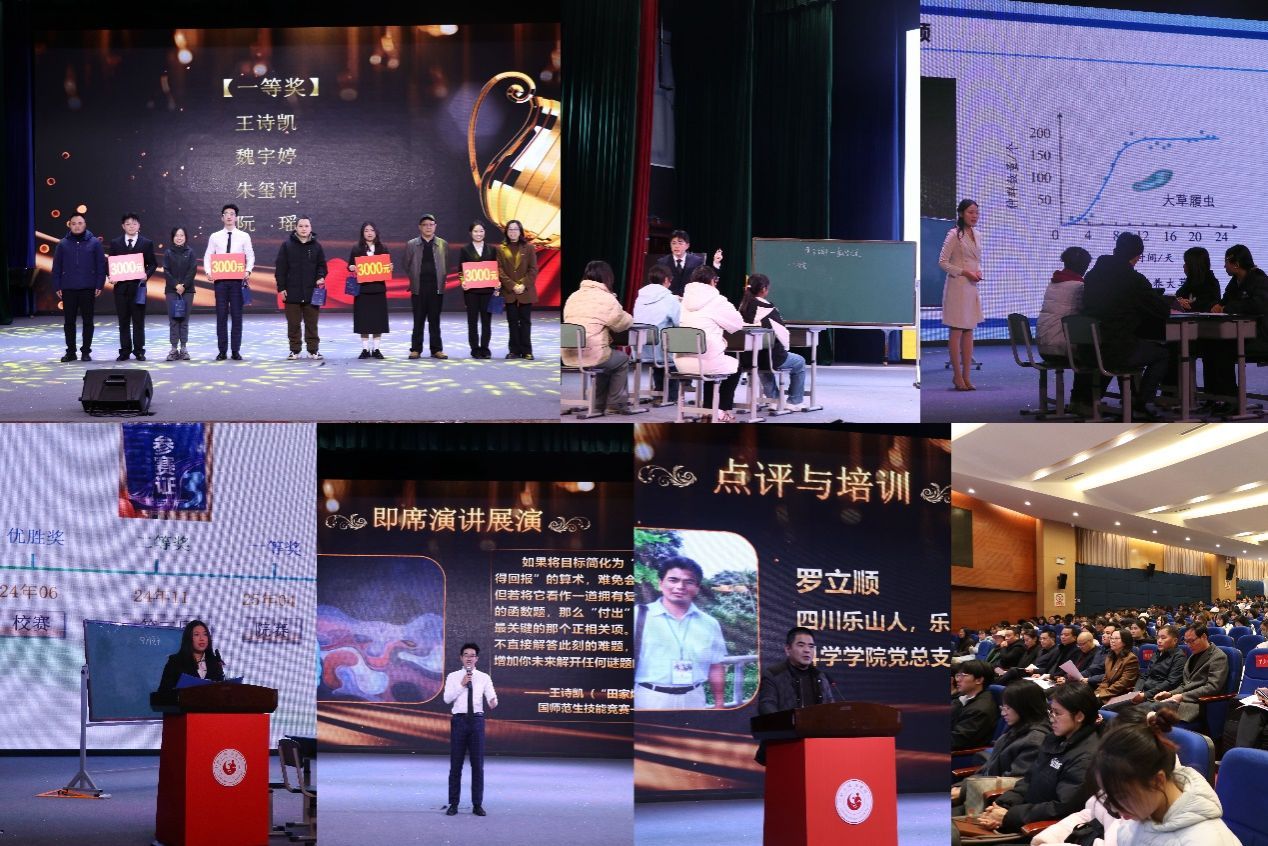 12月4日,教师教育学院与国家语言文字推广基地联合主办“言为师表,行铸未来”师范生技能成果展演,570人参与。副校长江滔致辞阐释主题,获奖选手展示“黄金分割”“生物种间竞争”等教学片段,分享参赛心得并进行即席演讲。教育科学学院党委书记罗立顺围绕教师口语、面试应答等内容开展培训,践行“以赛促教”理念,助力师范生提升从教核心竞争力。