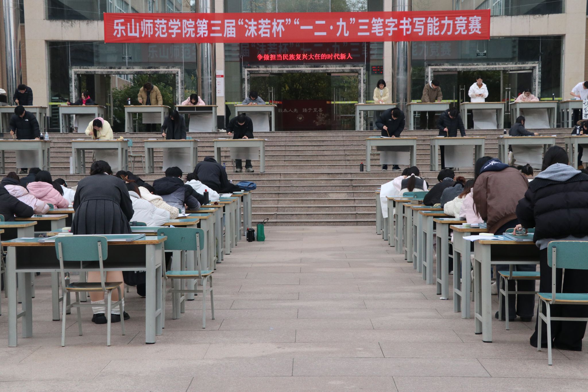 本网讯(文/谢影 图/杨婉馨)12月11日,行知楼前的桂花广场墨香氤氲、笔韵流转,乐山师范学院第三届“沫若杯”“一二・九”三笔字书写能力竞赛如期启幕。本次赛事由国家语言文字推广基地(乐山师范学院)、美术与设计学院联合主办,以纪念“一二・九”运动九十周年为契机,吸引全校129名学子踊跃参赛。