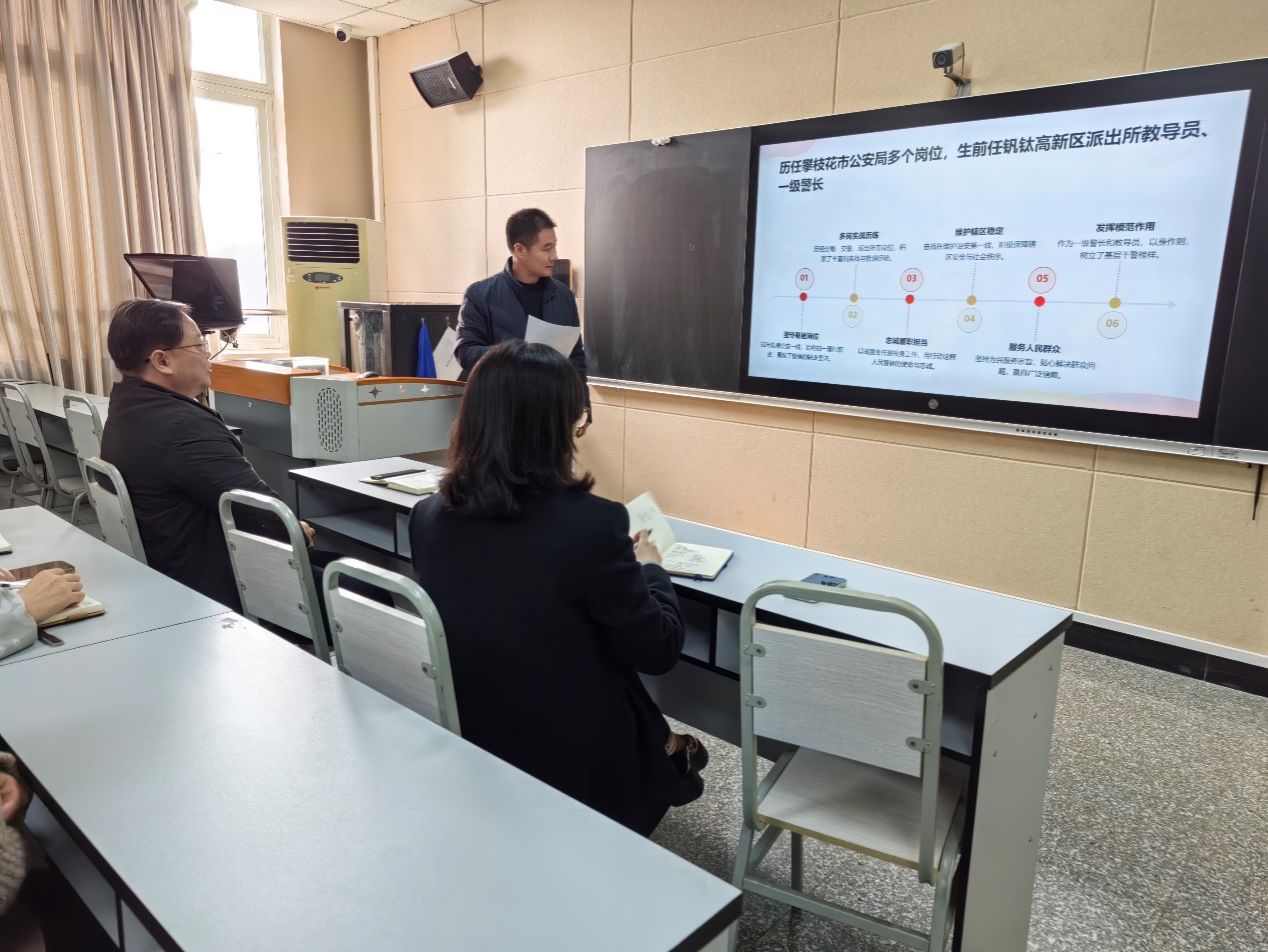 课上,徐波同志详细介绍了张炼同志的生平事迹。张炼同志从警32年,始终扎根基层,在打击犯罪、维护稳定、服务群众、无私奉献,累计参与重大安保任务50余次,化解重大案事件100余起,侦破各类案件110余件,调解纠纷千余起,最终因公殉职,被追授“四川省优秀共产党员”称号。徐波强调,要深入学习张炼同志信念坚定、对党忠诚的政治品格,恪尽职守、不畏艰险的担当精神,心系群众、真情为民的为民情怀和严以律己、坦荡无私的道德品行。